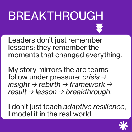 My signature framework transforms real-world adversity into sustainable peak performance through self-awareness, adaptability, and emotional agility. Built on evidence-based wellness coaching and lived resilience, it gives leaders a repeatable system to thrive through uncertainty — not despite it.