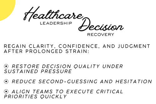 I partner with healthcare organizations that understand performance stability depends on disciplined decision quality, especially after prolonged strain.
