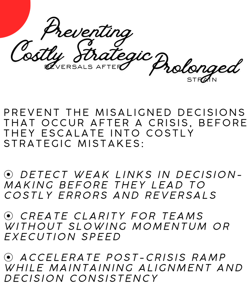 Our next speaker for [insert event name here] specializes in a critical leadership challenge: what happens after disruption — when pressure remains high and decision quality quietly erodes.