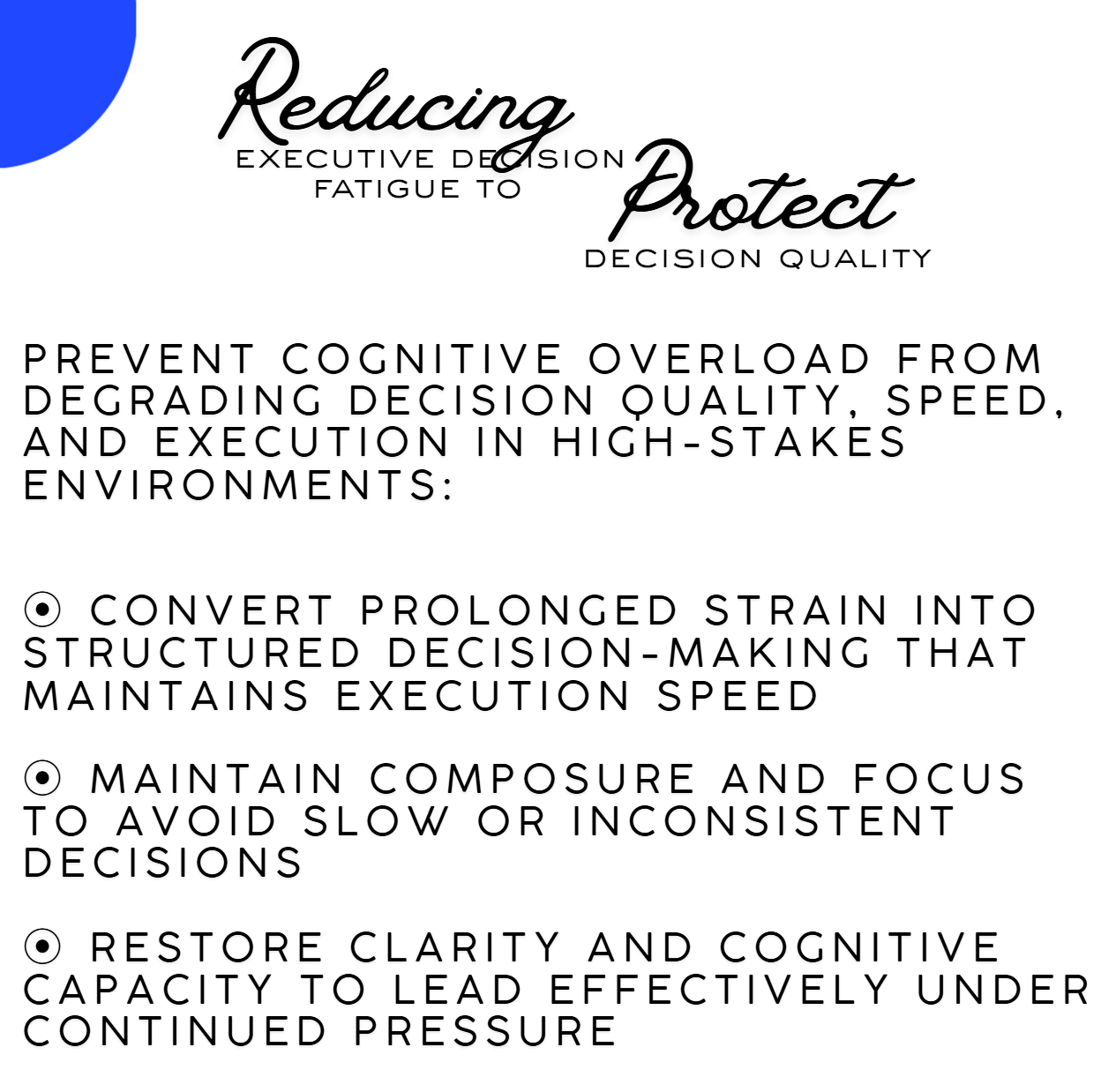 - Restore executive decision quality under susttained pressure